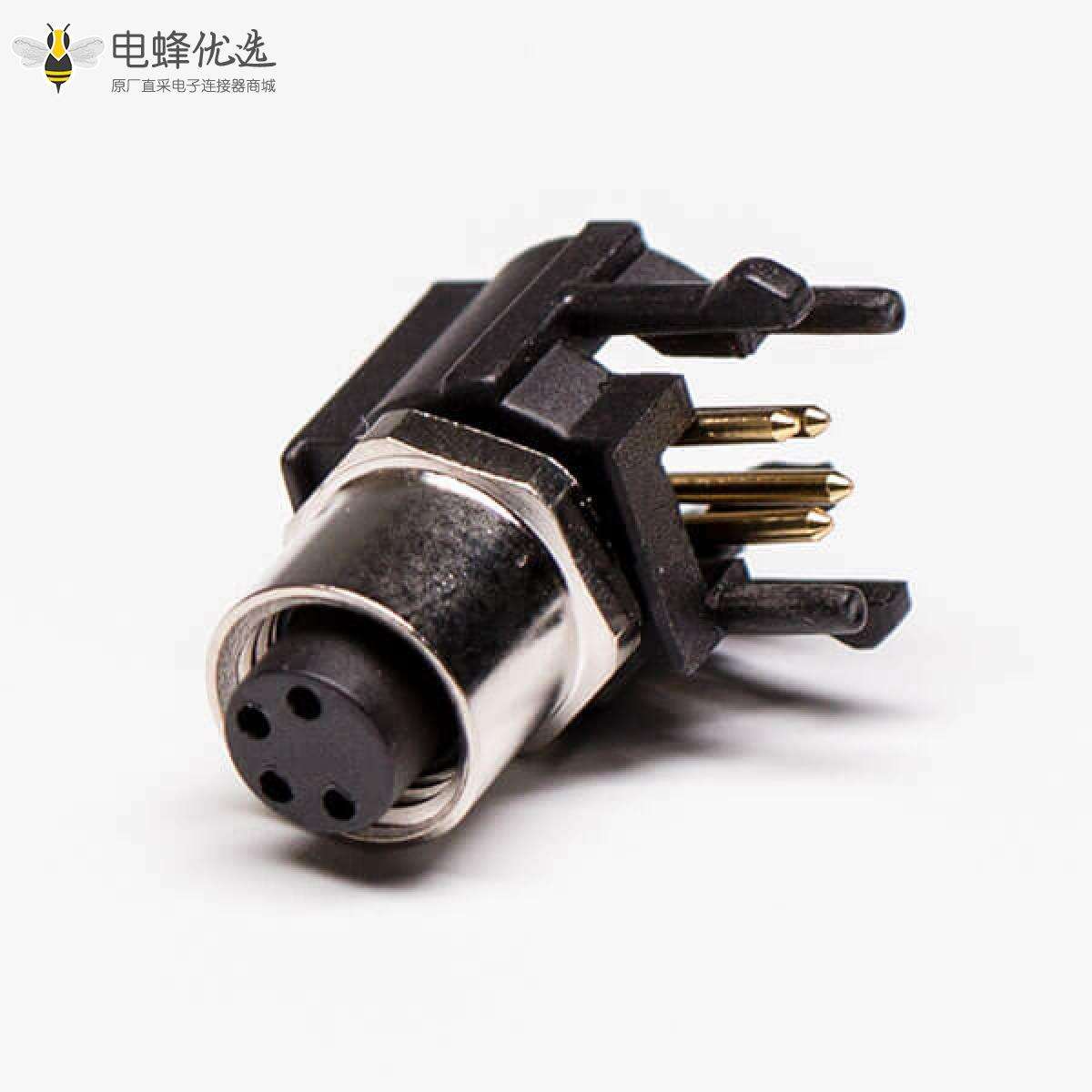 M8,4芯,A编码,板端插座,母,弯的,插板,不带屏蔽 ;