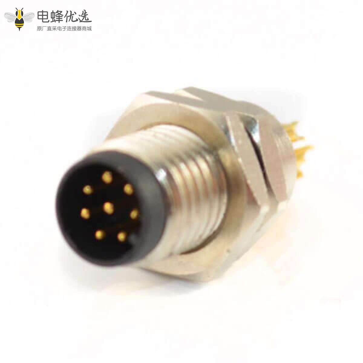 M8,8芯,A编码,板端插座,公,前锁板,直的,焊线,不带屏蔽 ;