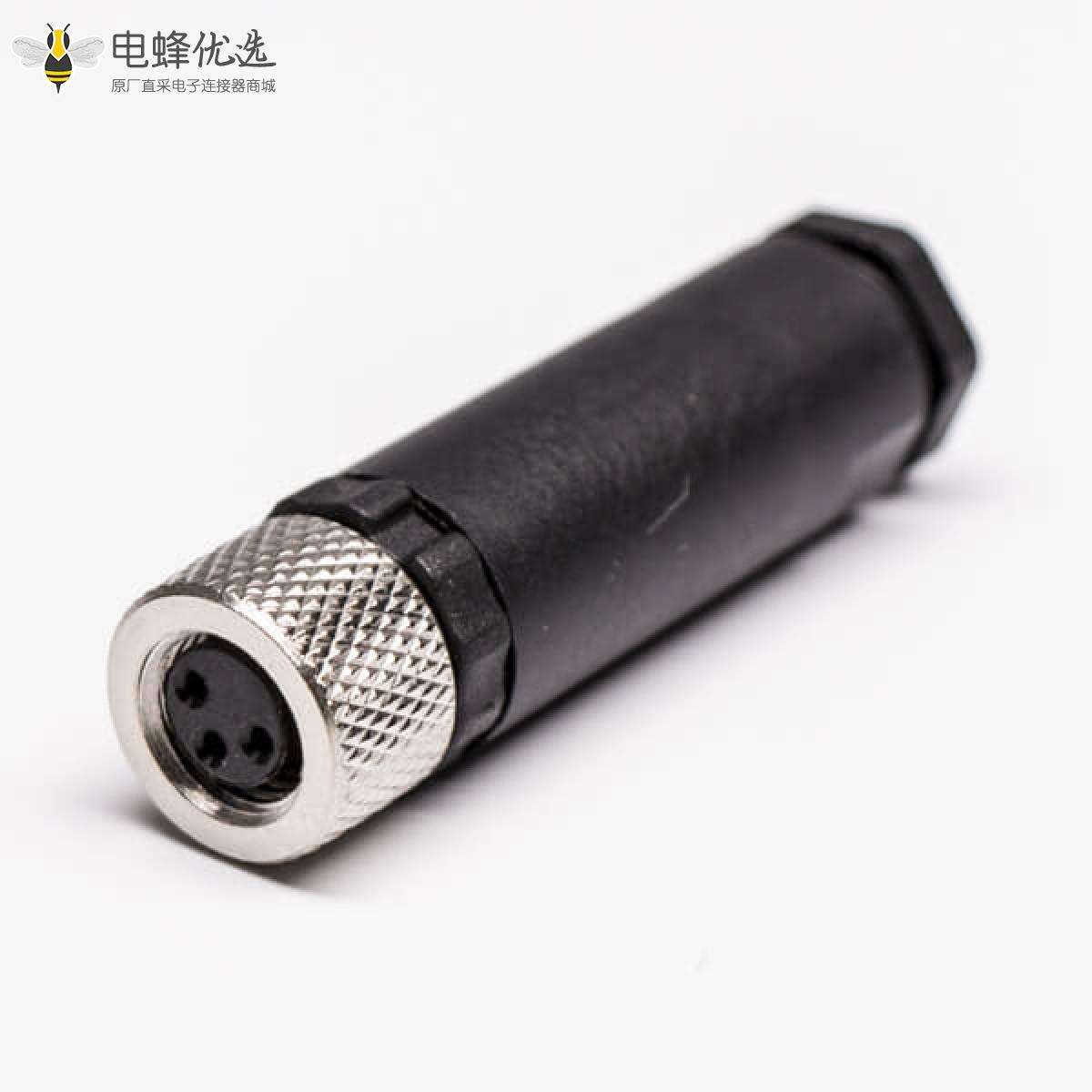M8,3芯,A编码,组装接头,母,现场组装式,直的,螺丝锁线,不带屏蔽;