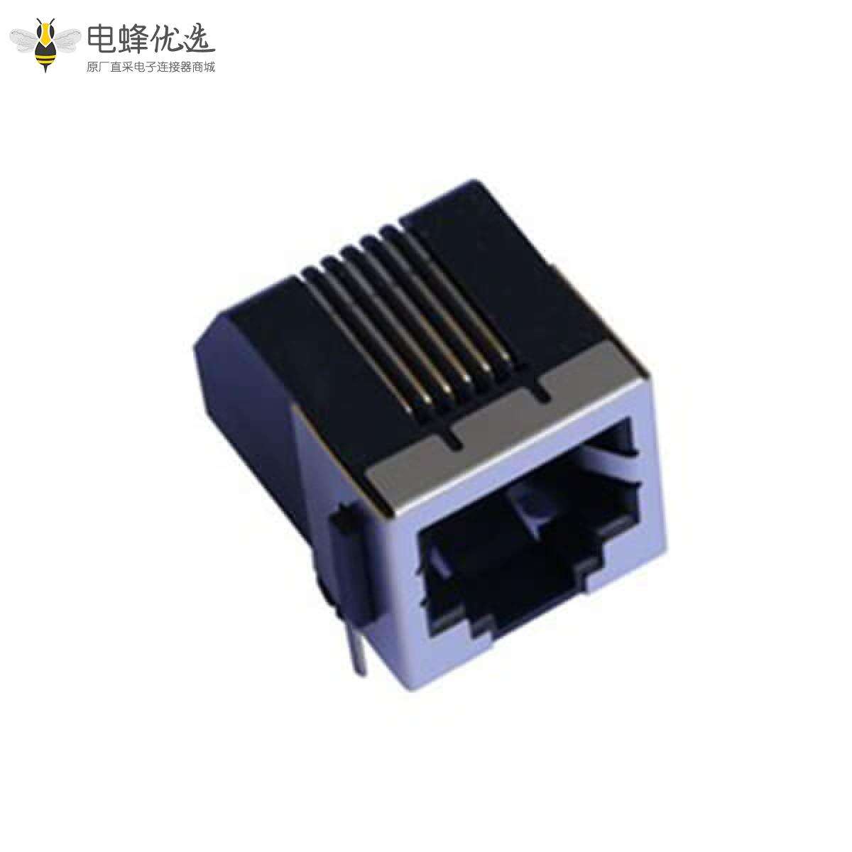 - RJ45连接器,母座,PCB板,8P8C,1*1,单层,单口,弯式,非屏蔽,不带弹片,不带灯,不带滤波器,铜壳,镀镍;