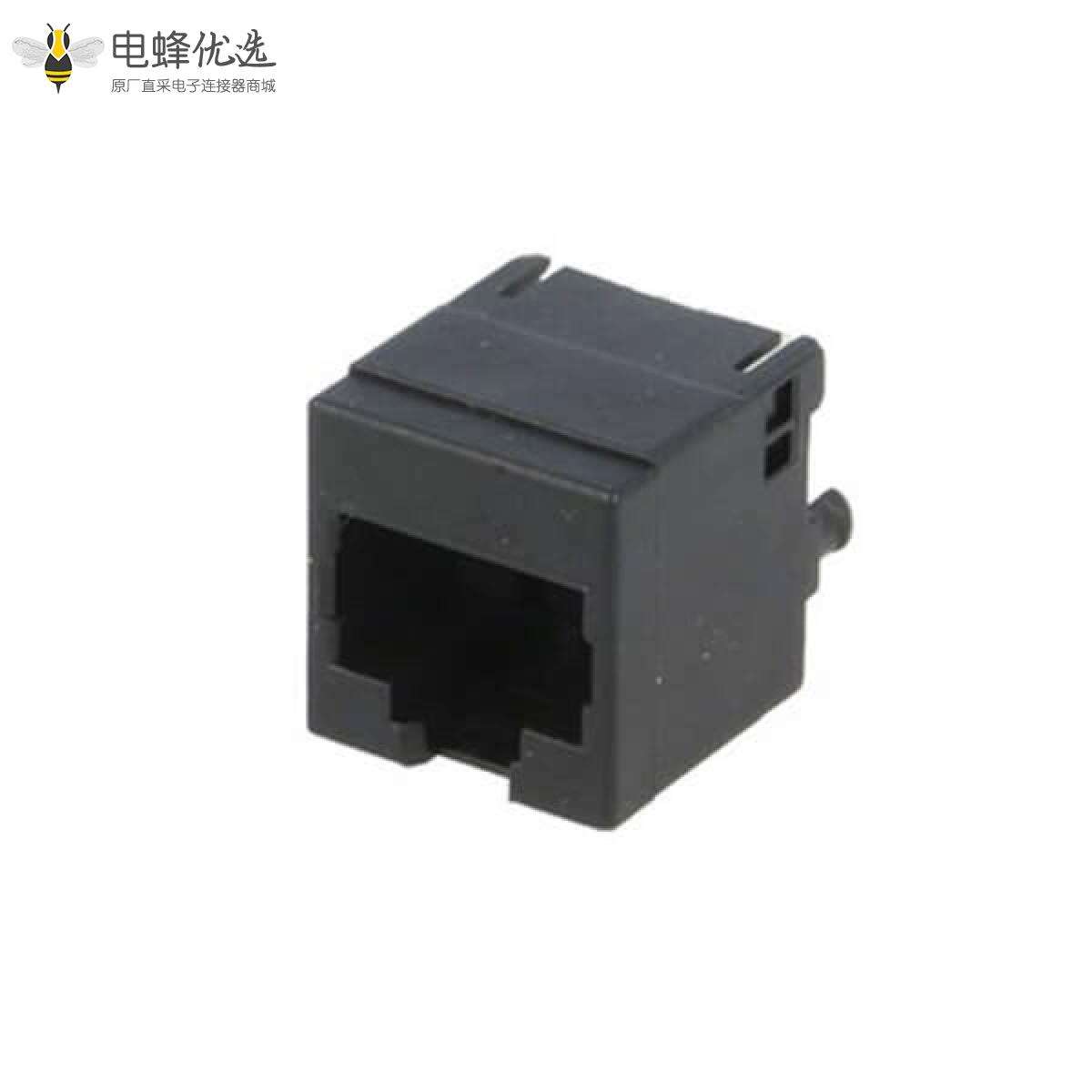 - RJ45连接器,母座,PCB板,8P8C,1*1,单层,单口,弯式,非屏蔽,不带弹片,不带灯,不带滤波器,全塑,灰色;