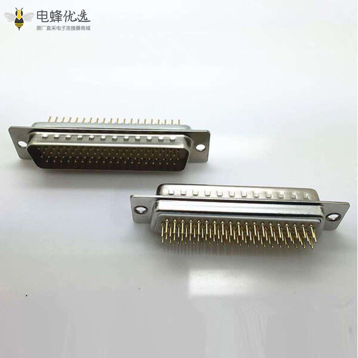 - D-sub连接器,高密度,车针型,78pin,公头,车针镀金,180度,插PCB板;
