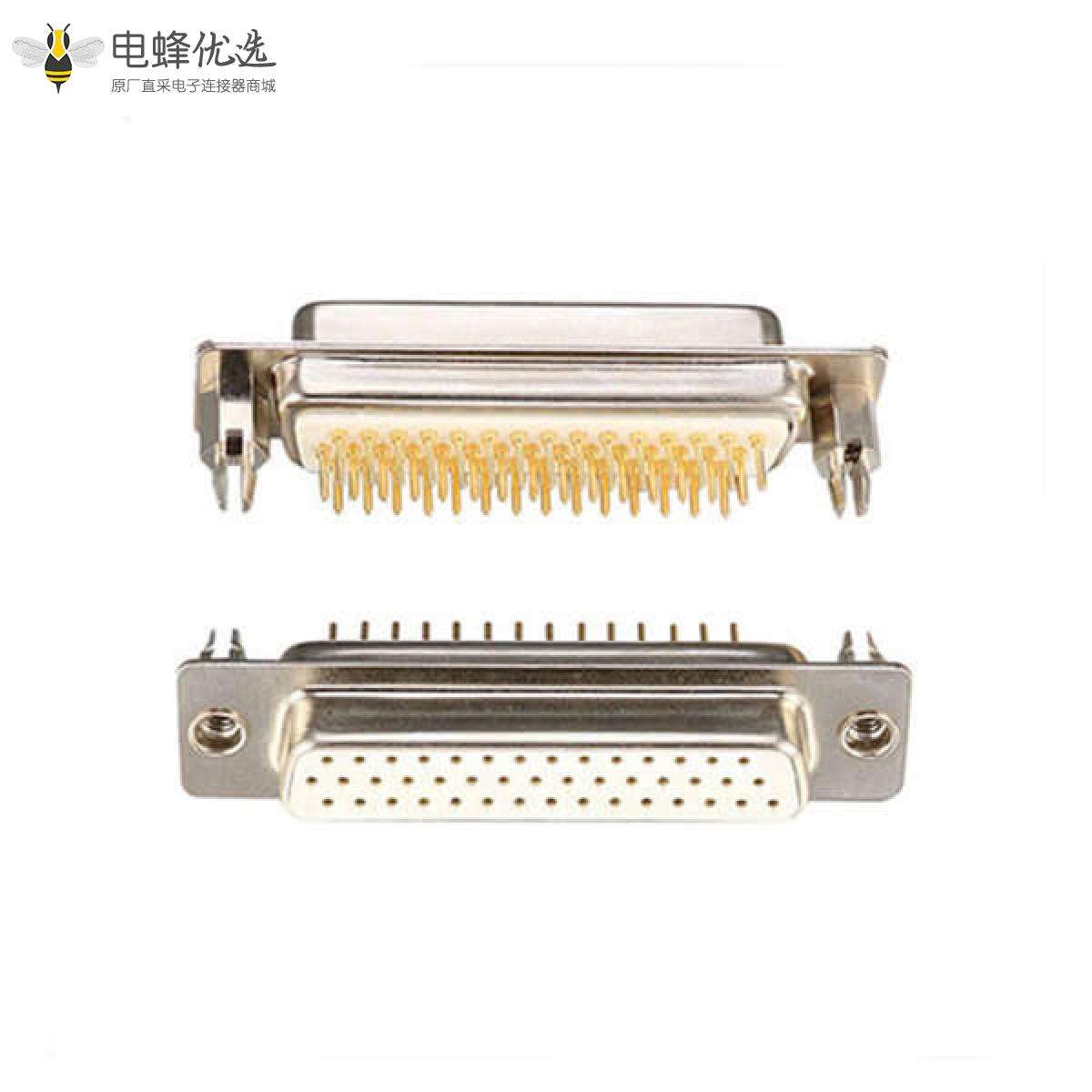 - D-sub连接器,高密度,车针型,44pin,母头,车针镀金,180度,插PCB板,带鱼叉脚;