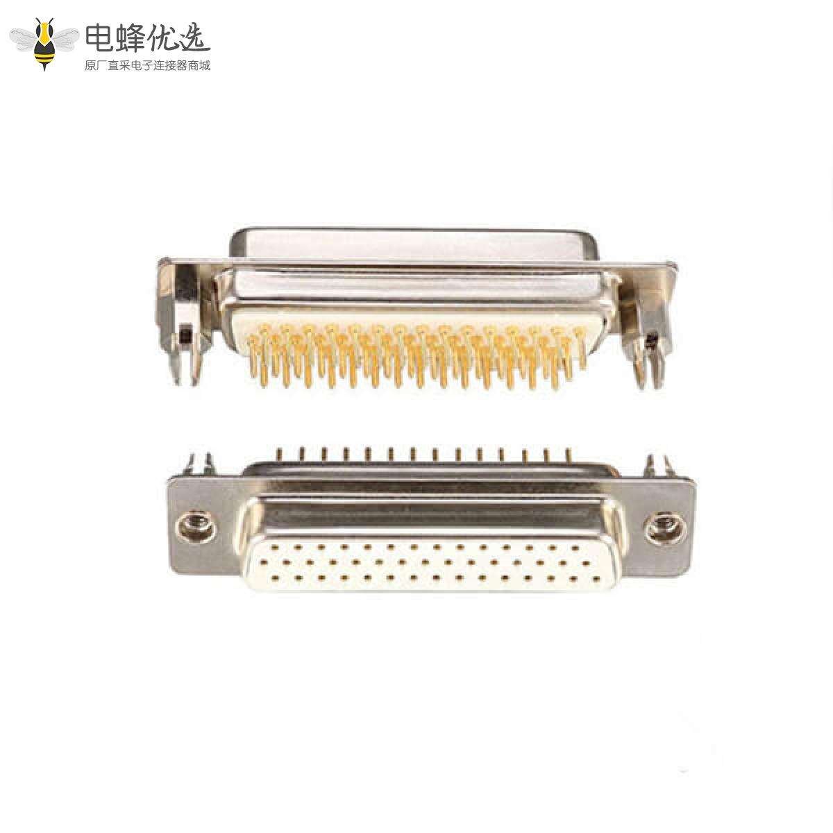 - D-sub连接器,高密度,车针型,44pin,公头,车针镀金,180度,插PCB板,带鱼叉脚;