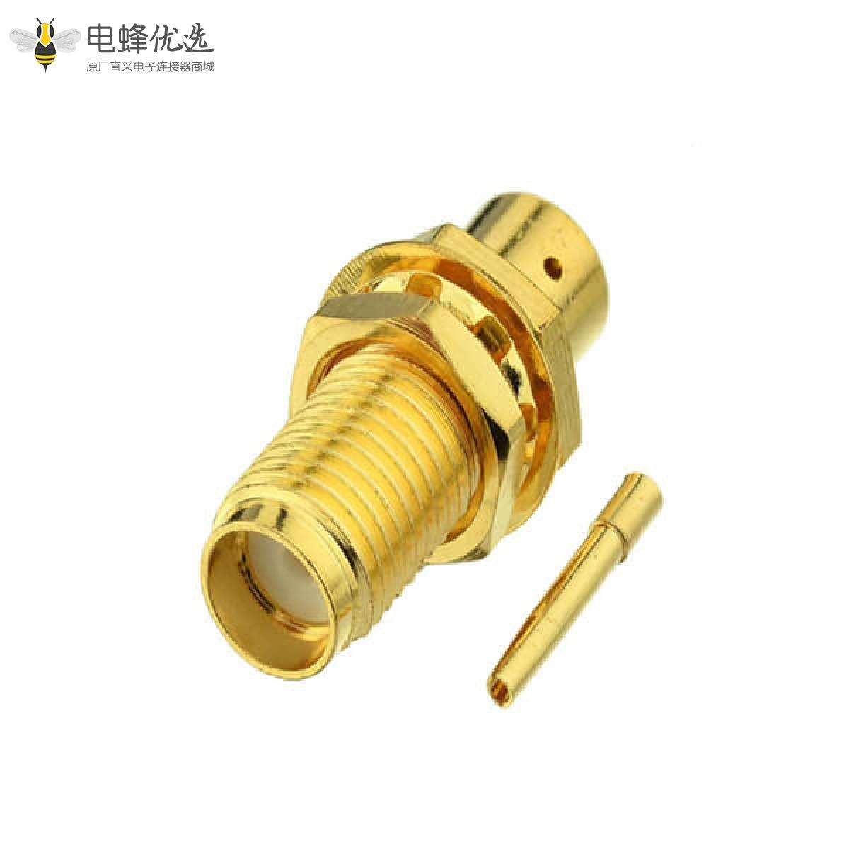 SMA连接器,母,直式,50ohm,前锁板,,线端,焊线,镀金,铜,LMR400;