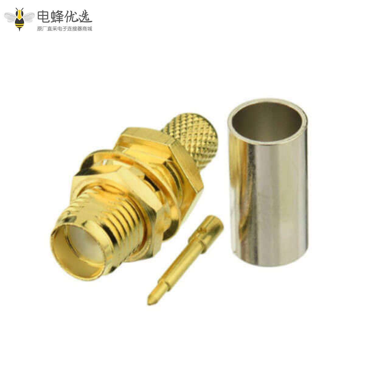 SMA连接器,母,直式,50ohm,4孔法兰,线端,压接,镀金,铜,RG8;