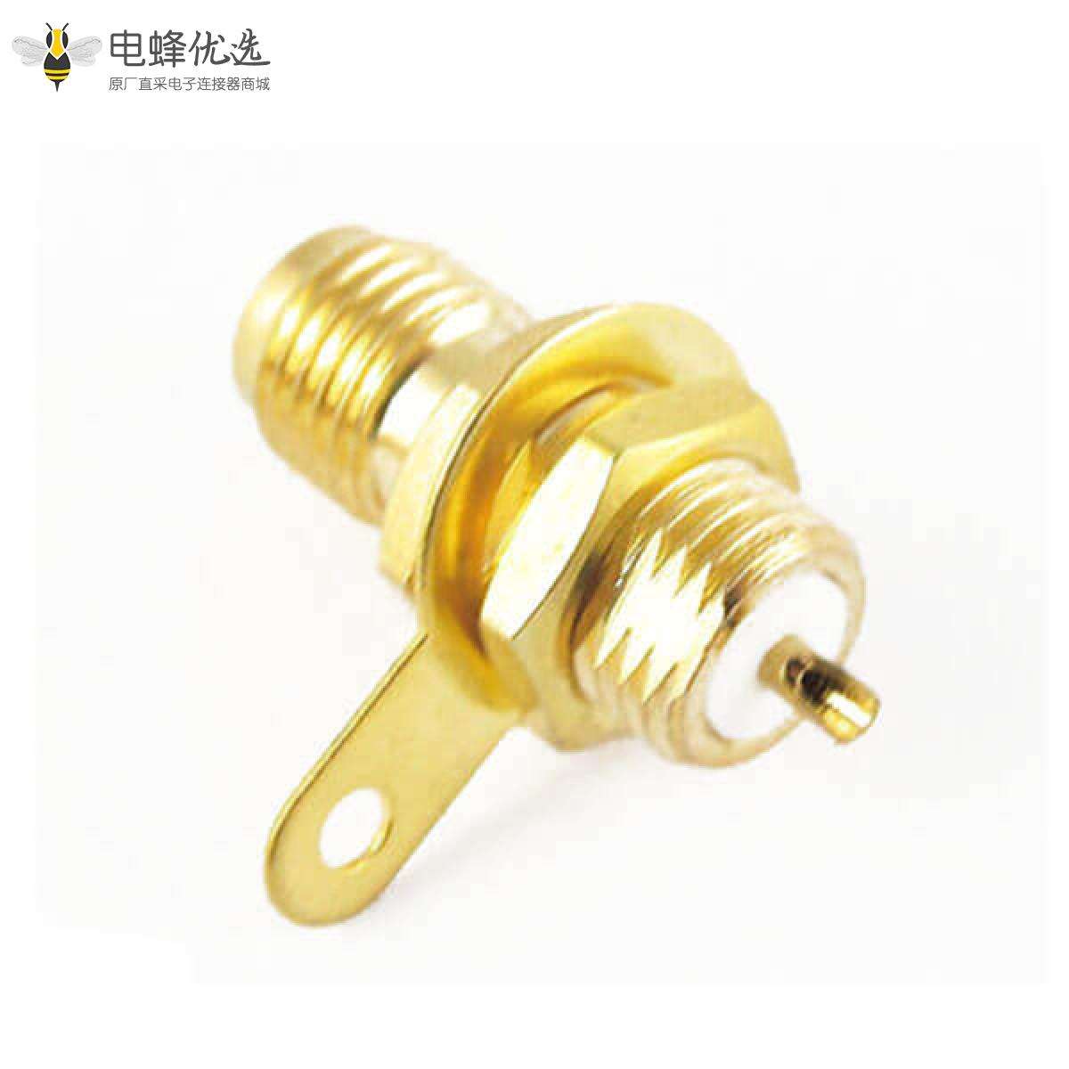 SMA连接器,母,直式,50ohm,前锁板,线端,焊线,镀金,铜;