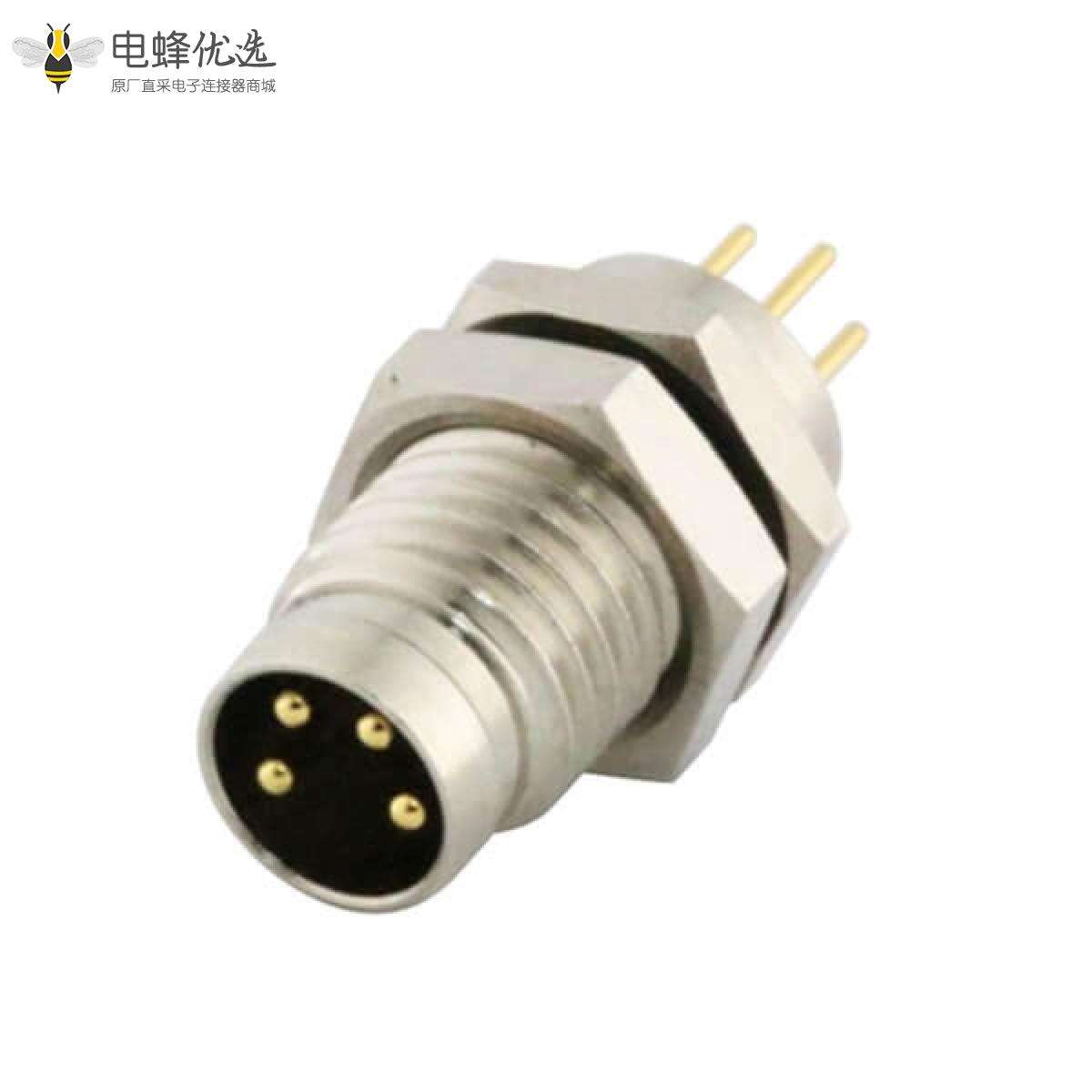 - M8, 4芯, A编码, 板端插座, 公, 前锁板, 直的, 插板, 不带屏蔽 ;