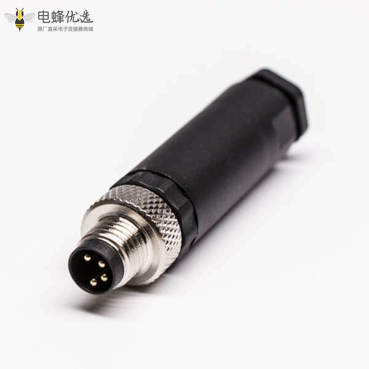 - M8, 4芯, A编码, 组装接头, 公, 现场组装式, 直的, 螺丝锁线, 不带屏蔽;
