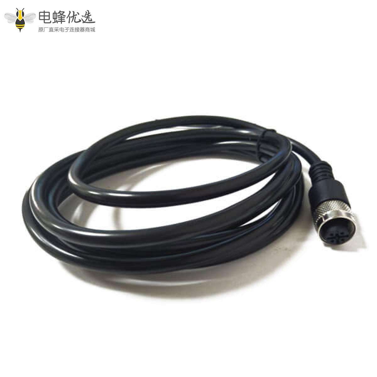 M12,A 编码,线束,3芯,母,直的,焊线,单边,不带屏蔽;