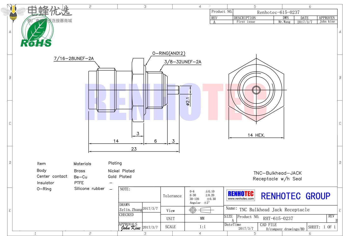 - 面板安装,母头,直式,穿墙,tnc连接器;