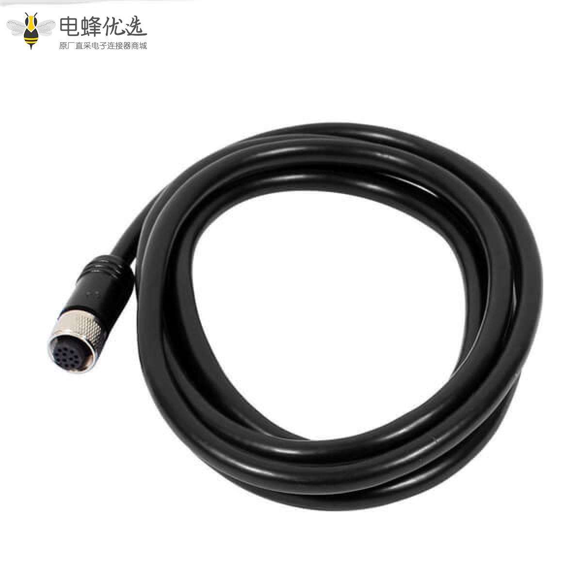 M12,A 编码,线束,12芯,母,直的,焊线,单边,不带屏蔽;