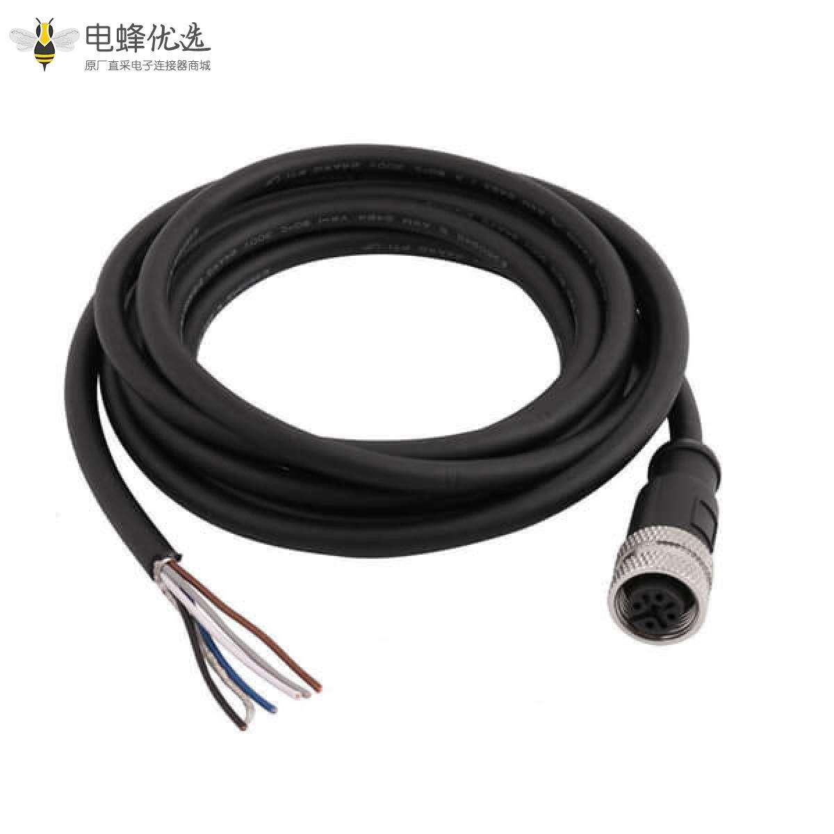 M12,A 编码,线束,5芯,母,直的,焊线,单边,不带屏蔽;