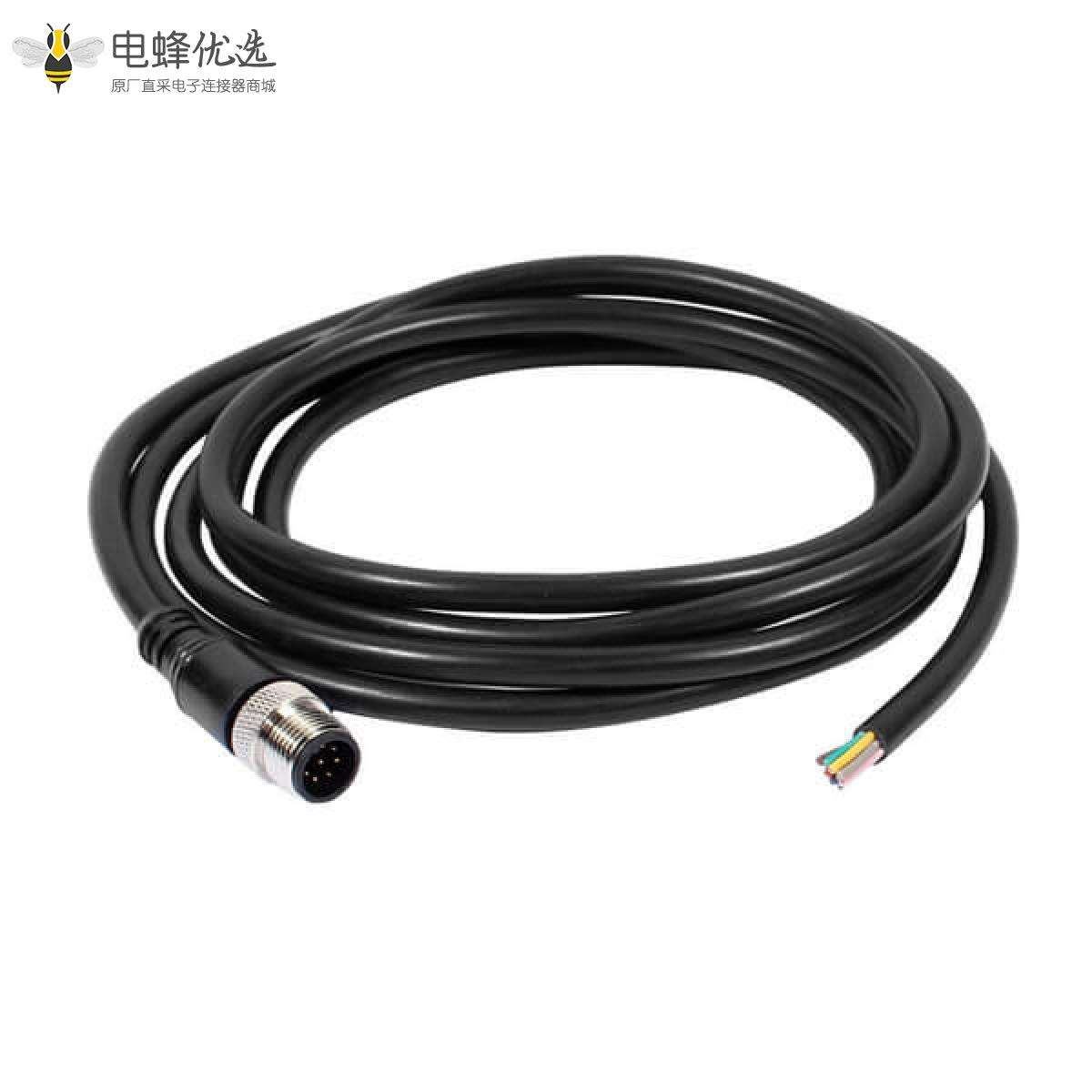 M12,A 编码,线束,8芯,公,直的,焊线,双边,不带屏蔽;