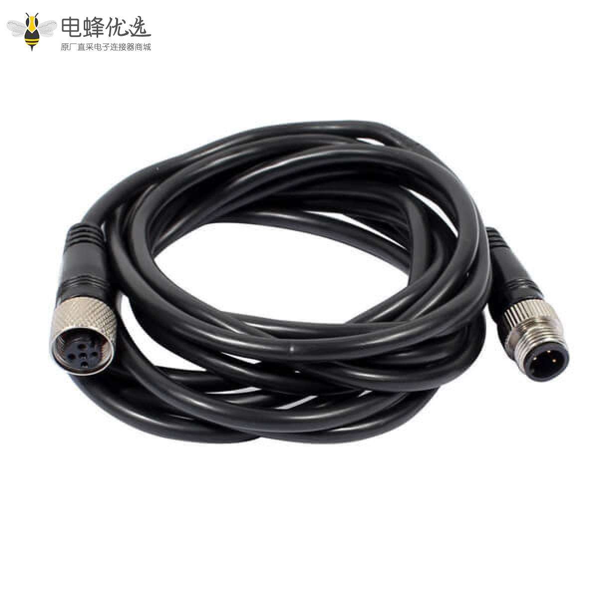 M12,A 编码,线束,3芯,公转母,直的,焊线,双边,不带屏蔽;
