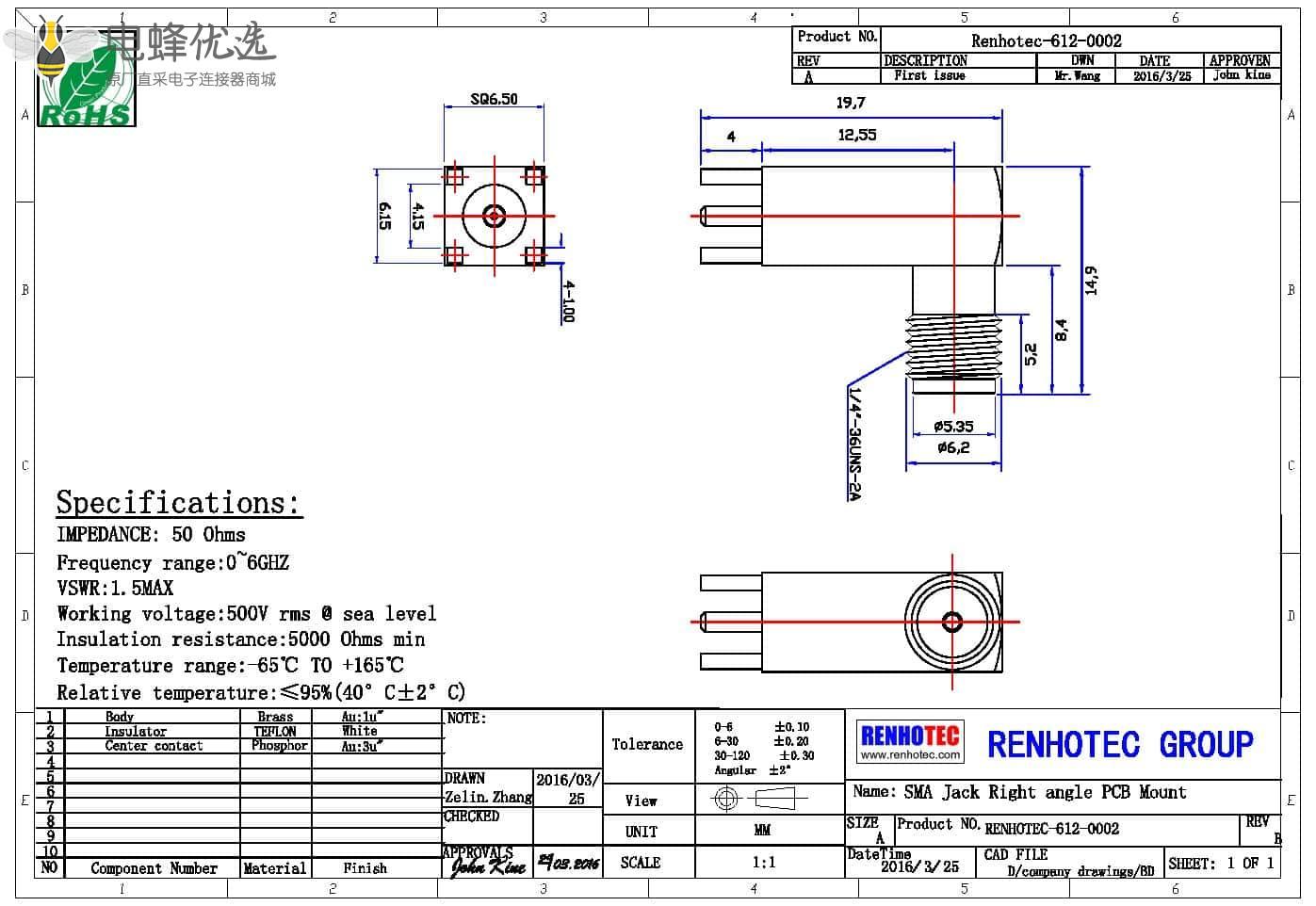 - sma连接器,pcb板,弯插,插孔,母头,50欧;