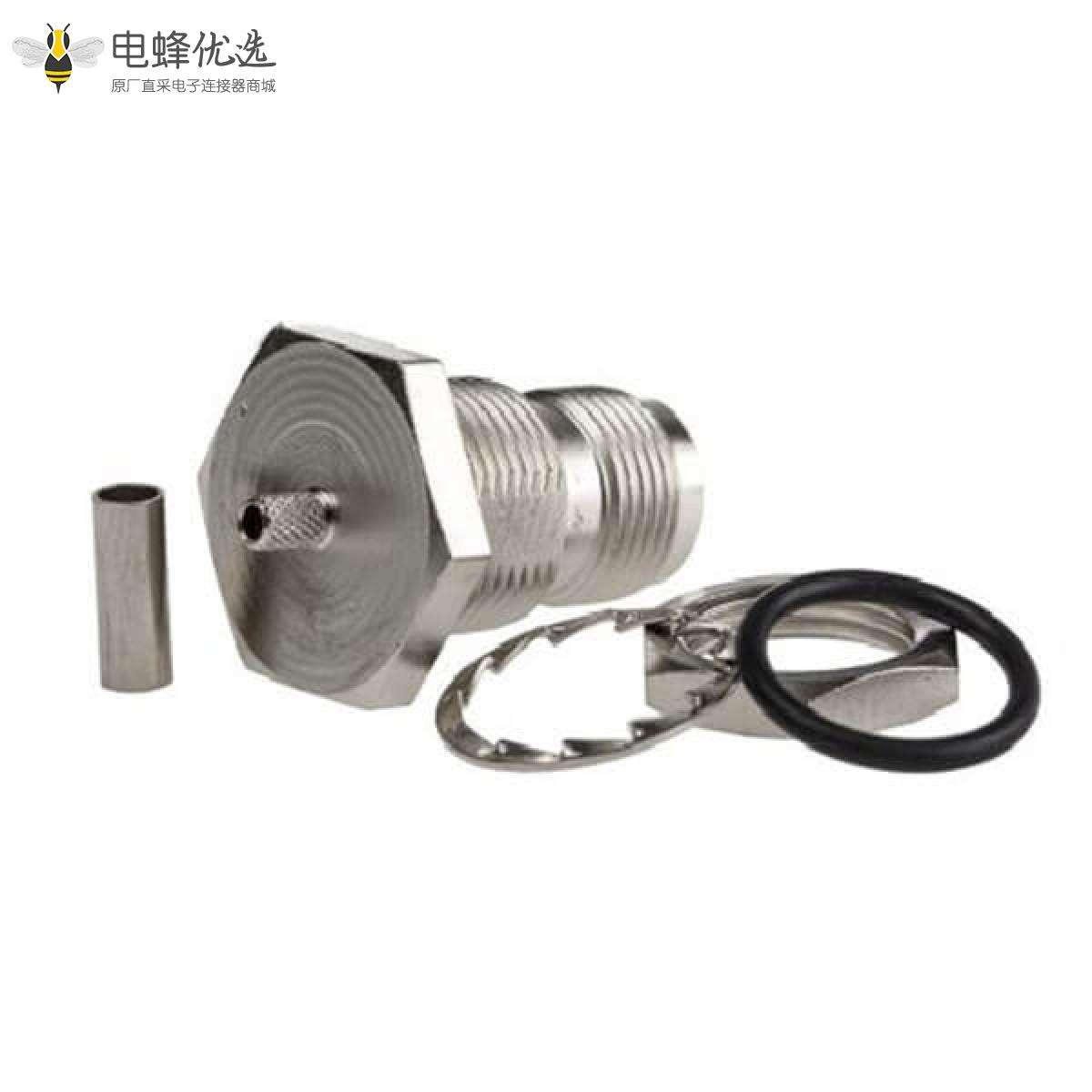 - 母头,直式,压接,面板安装,镍,RG174 / U,50Ω,金,铍铜;