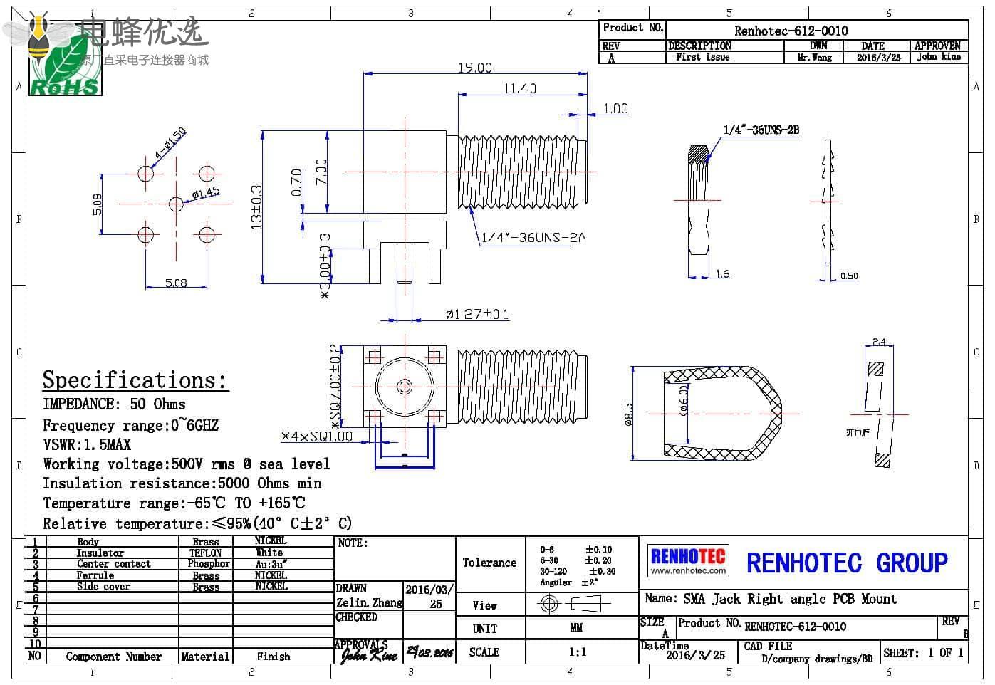- sma连接器,pcb板,弯插,插孔,母头,50欧,防尘;