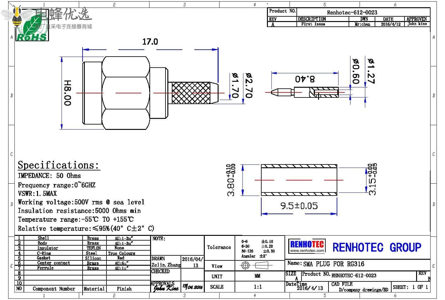 - sma连接器,同轴线缆,压接,直式,公头,RG316,RG174;