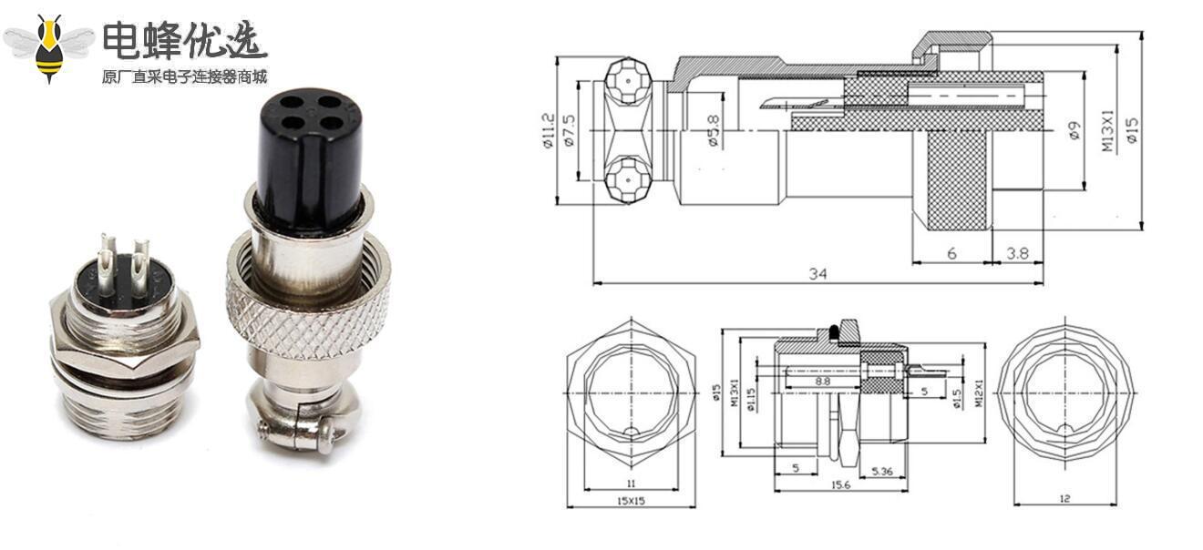 - GX12,对接款,插头,3芯,公/母,直式,接线;