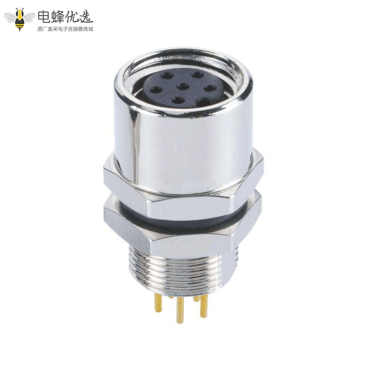 - M8, A编码, 6芯,板端插座, 母,直头, 接PCB板, 后锁板 ;