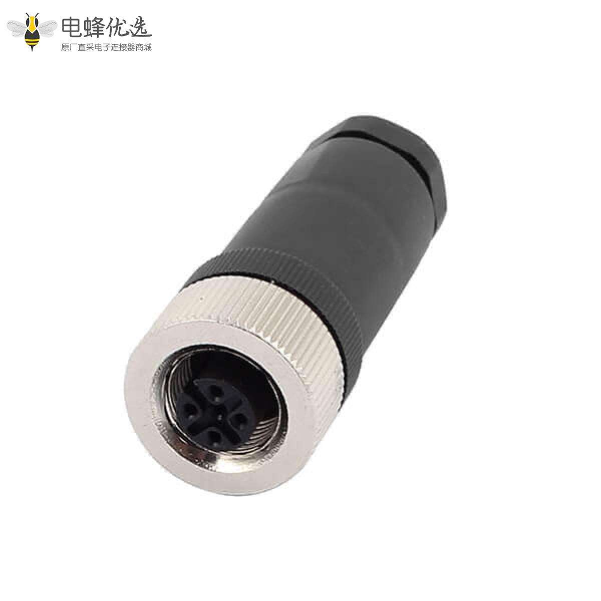 M12,A 编码,现场组装式,3芯,母,直式,螺丝锁线,不带屏蔽;
