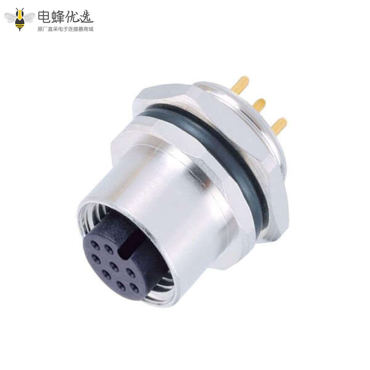 M12,A编码板端座子,后锁板,8芯,母,直式,插板;