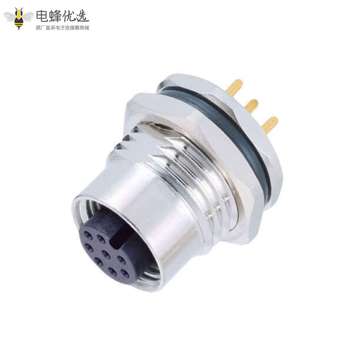 M12,A编码,板端座子,前锁板,8芯,母,直式,插板;