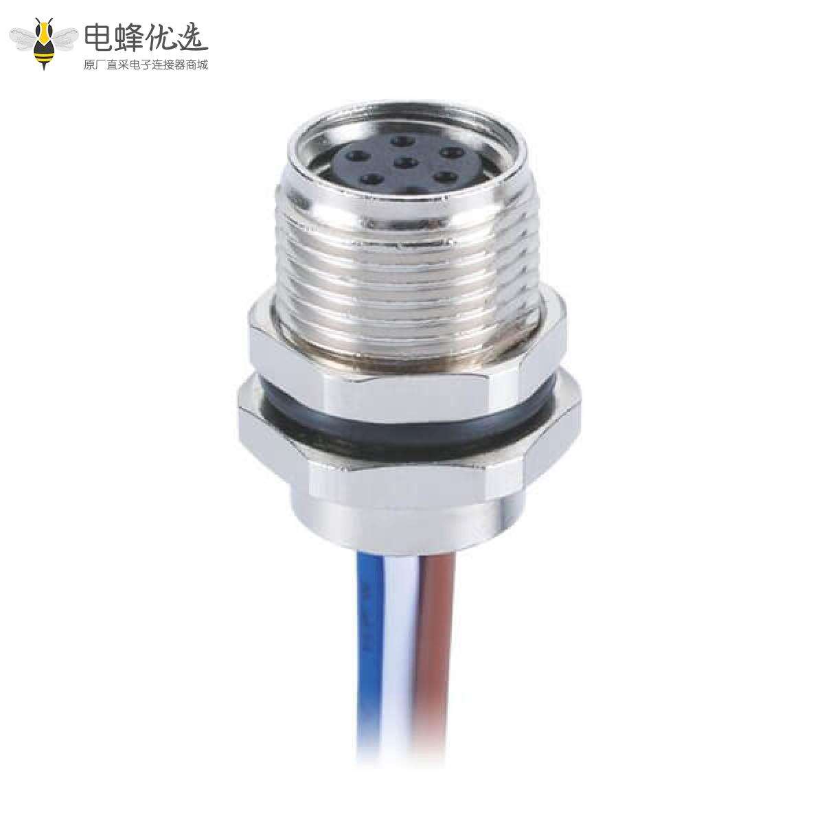 M8, A编码, 6芯,板端插座, 母, 直头, 线材, 焊接式, 前锁板;