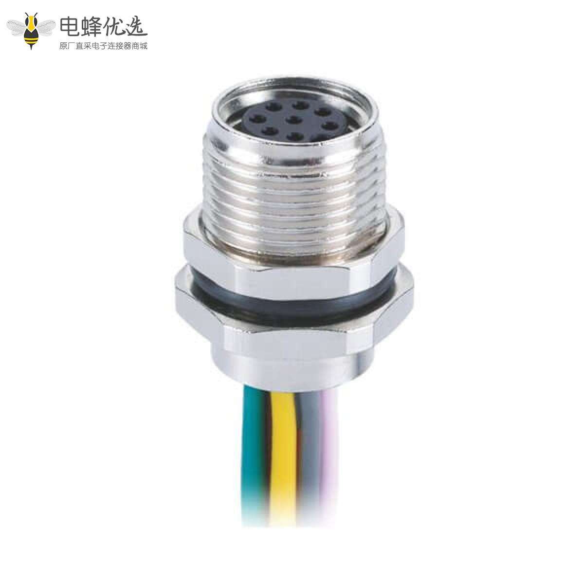 M8, A编码, 8芯,板端插座, 母, 直头, 线材, 焊接式, 前锁板;