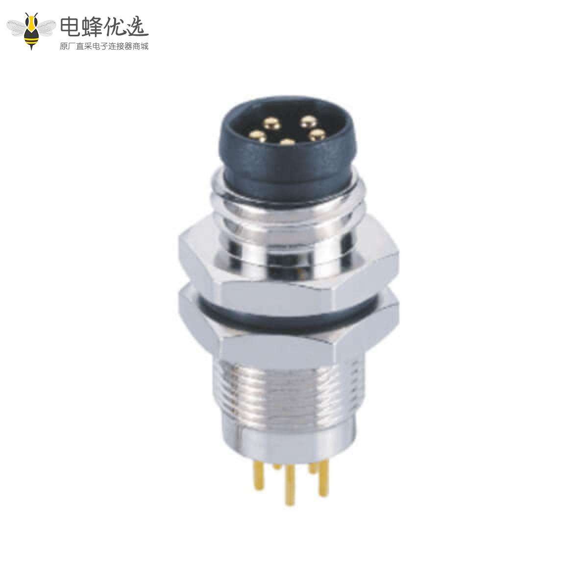 - M8, B编码, 5芯,板端插座, 公, 直头, 接PCB板, 后锁板;
