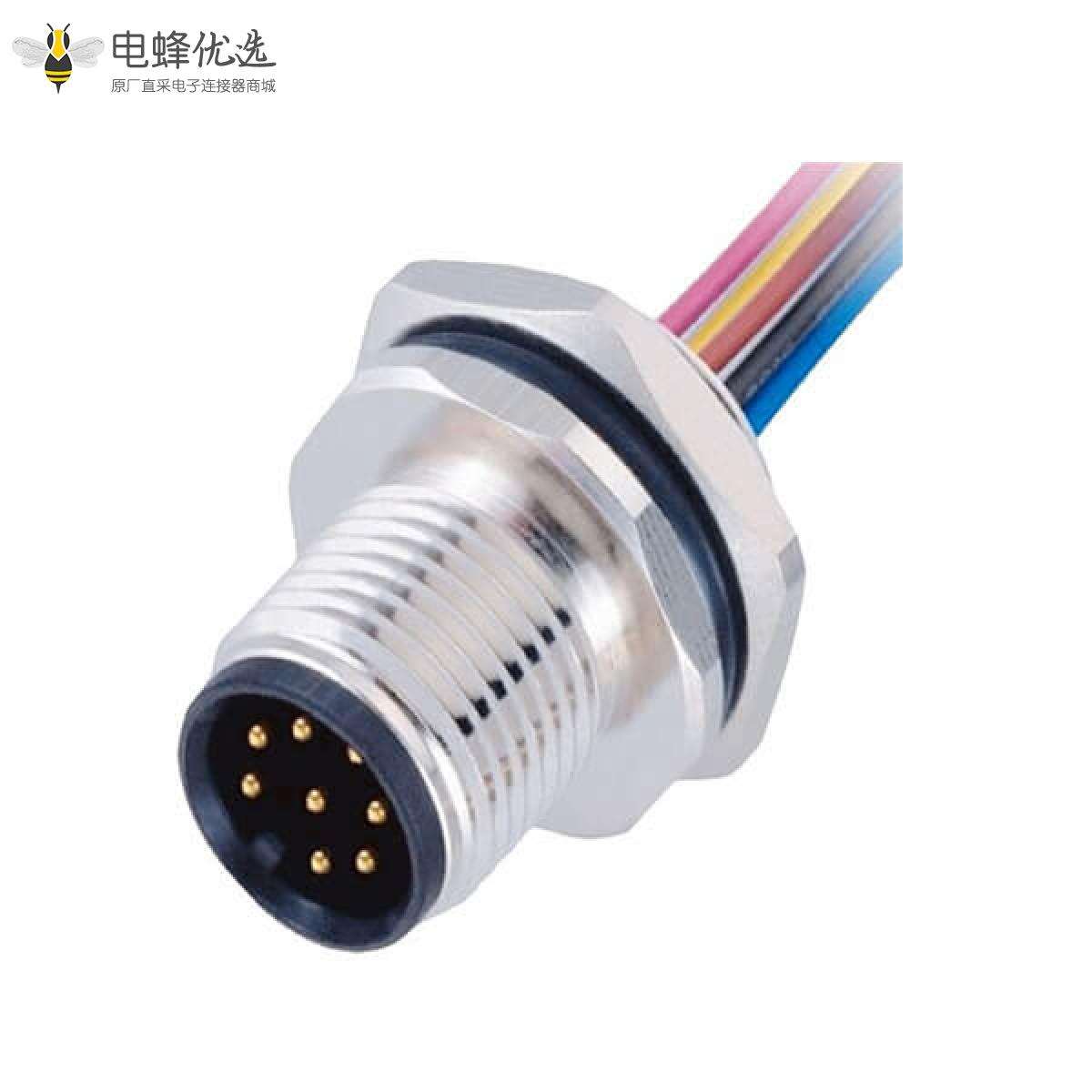 M12,A 编码,板端座子,后锁板,8芯,公,直式,焊线;