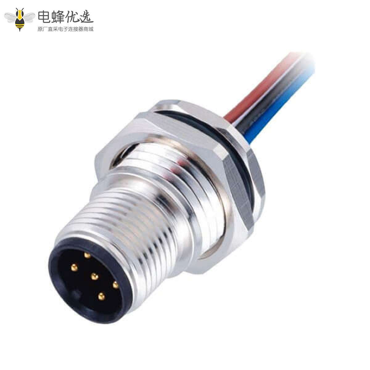 M12,A 编码,板端座子,前锁板,5芯,公,直式,焊线;