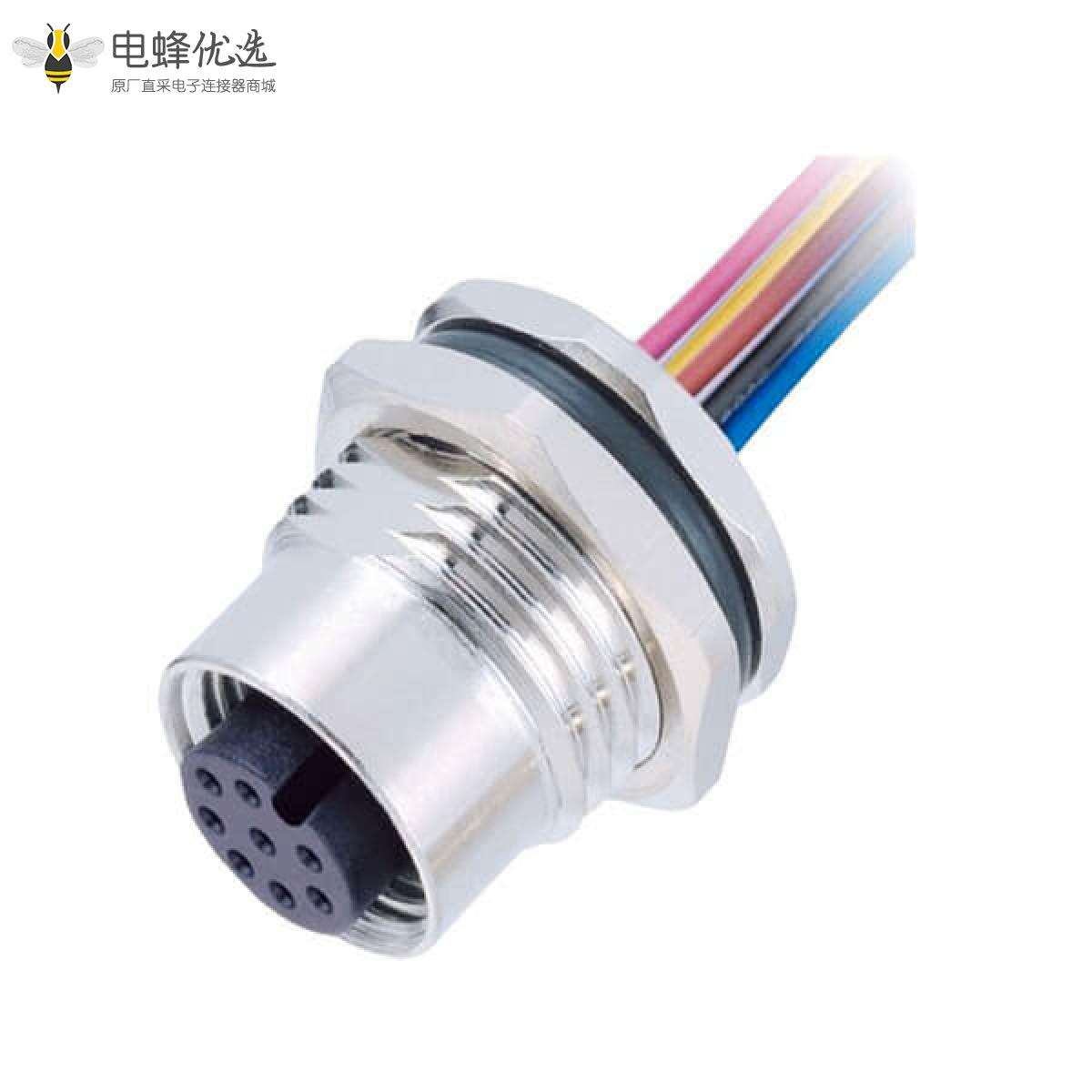 M12,A 编码,板端座子,前锁板,8芯,母,直式,焊线;