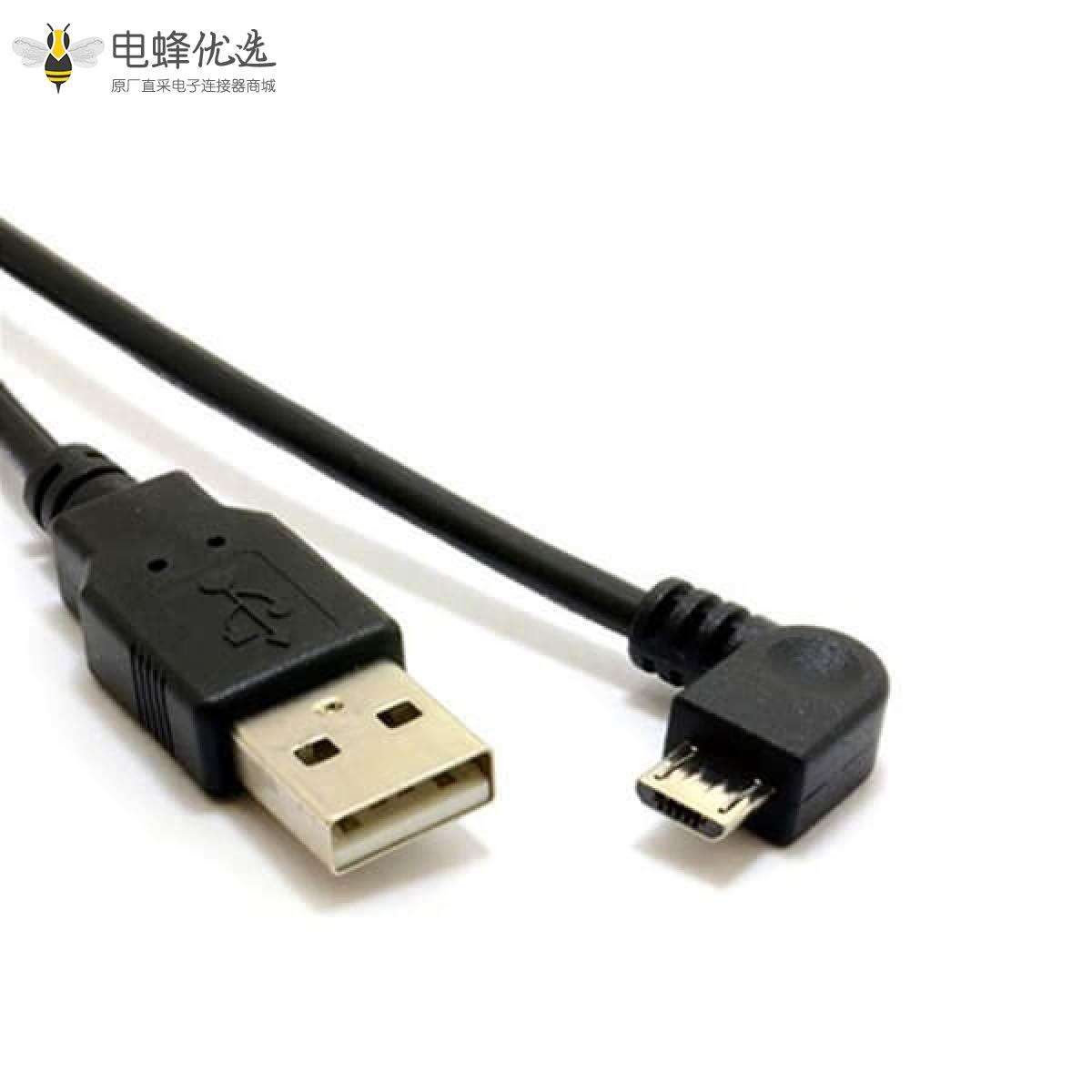 USB线材,USB 2.0, A型转Micro B,公转公,压铸,0.5米,右角90度;