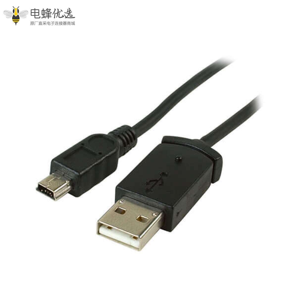 USB线材,USB 2.0, A型转Mini B,公转公,压铸,0.5米,直角180度;