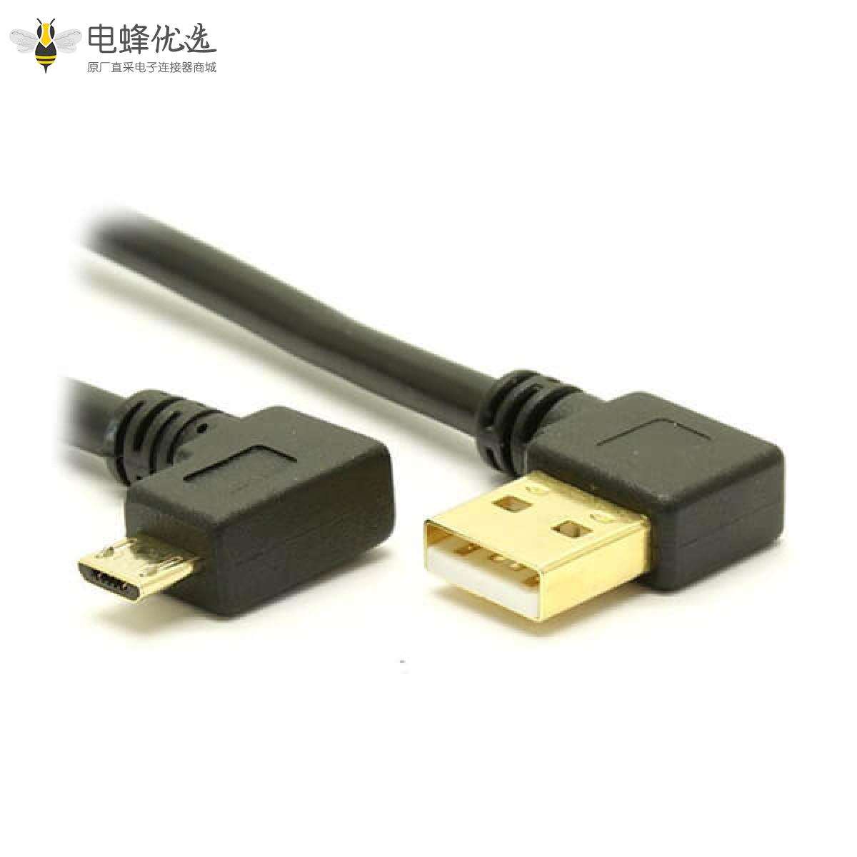 USB线材,USB 2.0, A型转Micro B,公转公,压铸,0.5米,90度;