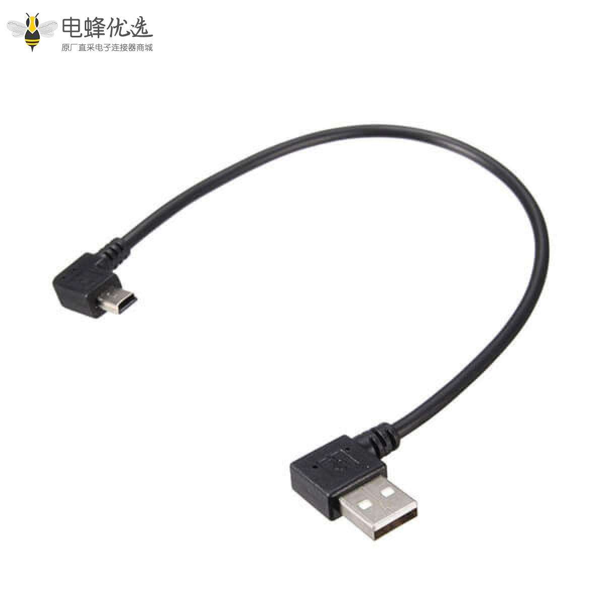 USB线材,USB 2.0, A型转Mini B,公转公,压铸,0.5米,90度;