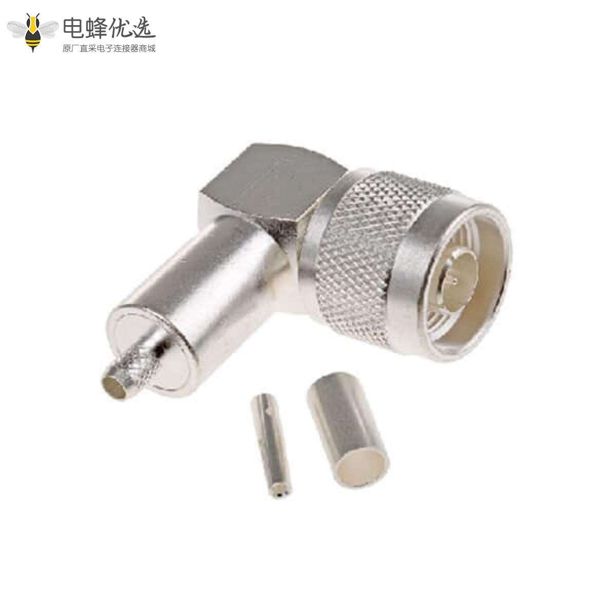 - 公头,电缆安装,压接,直角,50Ω,11GHz,银色,铜;
