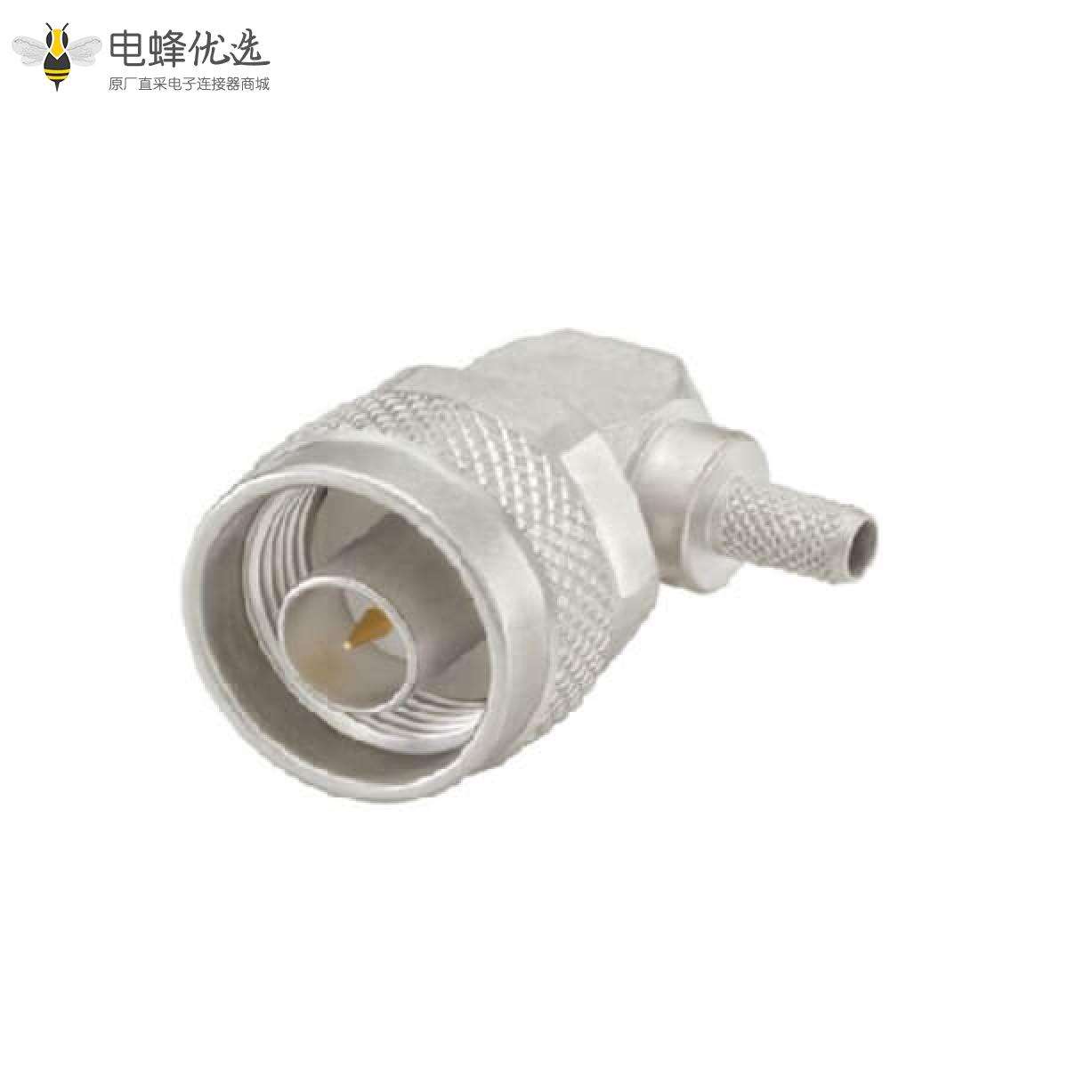- 公头,电缆安装,压接,直角,50Ω,11GHz,银色,灵活,铜;