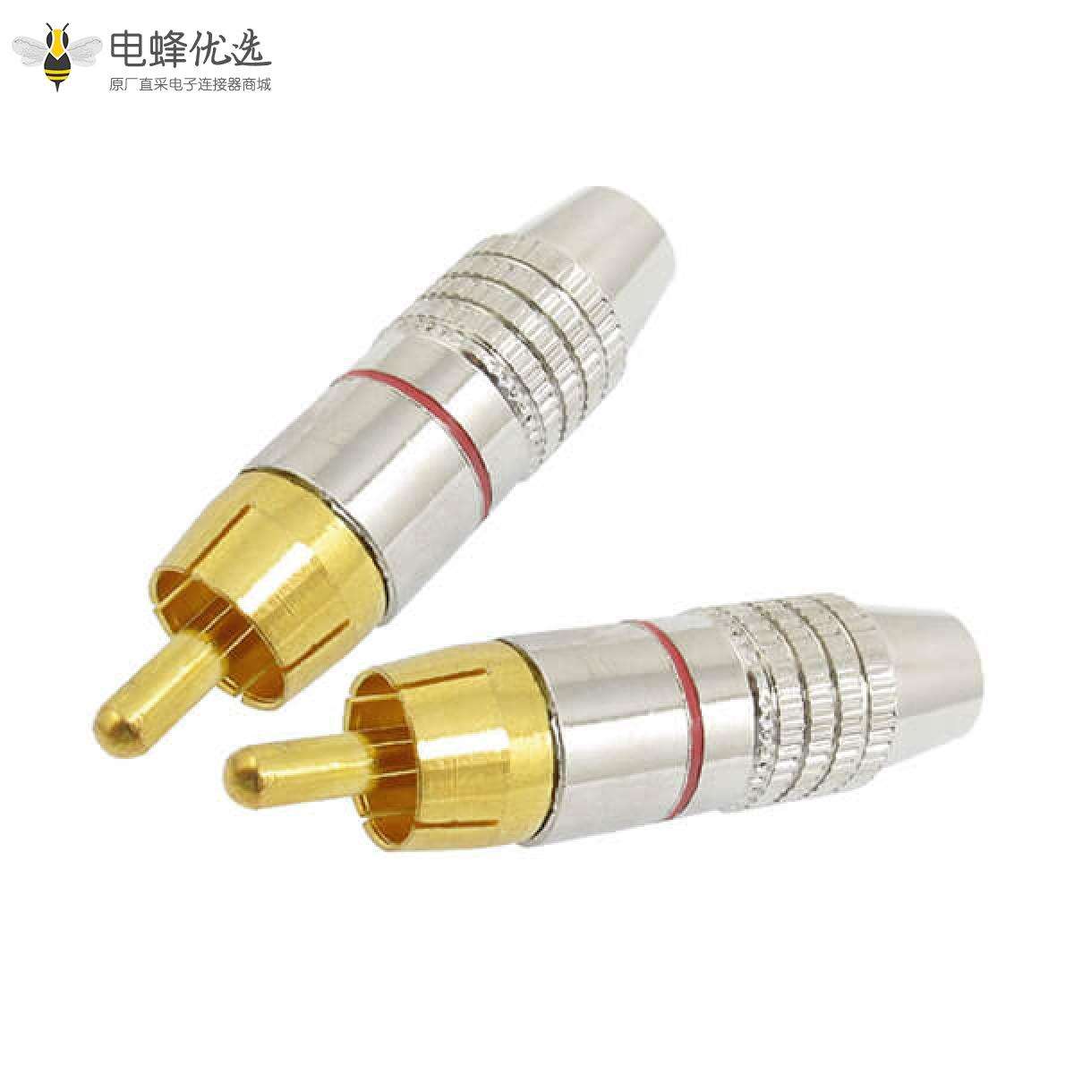RCA连接器,公,插头,直式式,接线,铜,镀金;