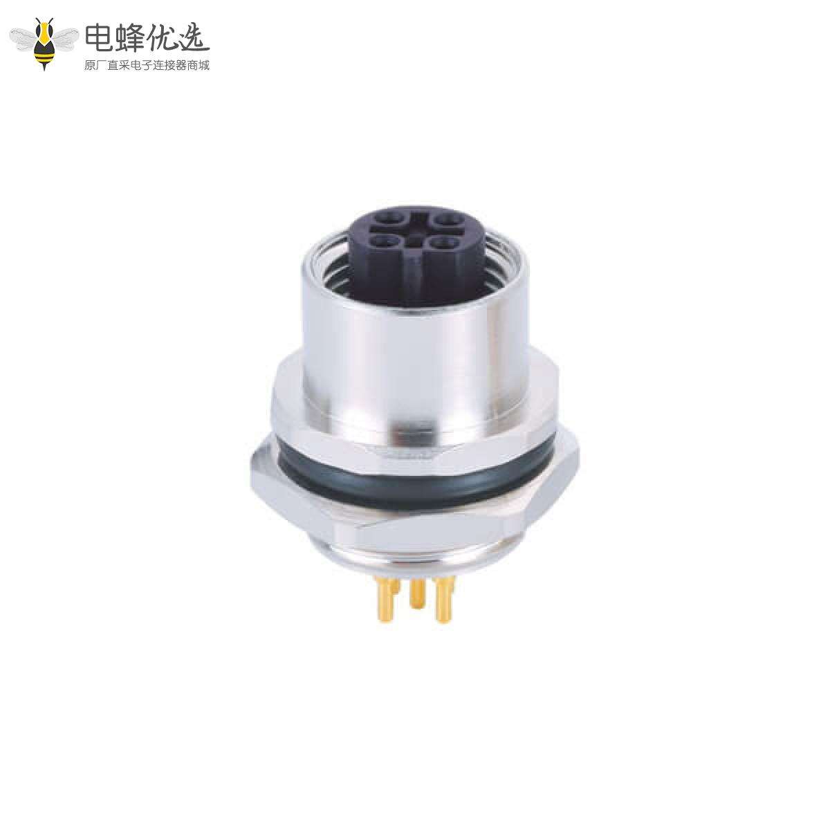 M12,板端插座,B Code,5芯,直式,m母头,接PCB板,后锁板;