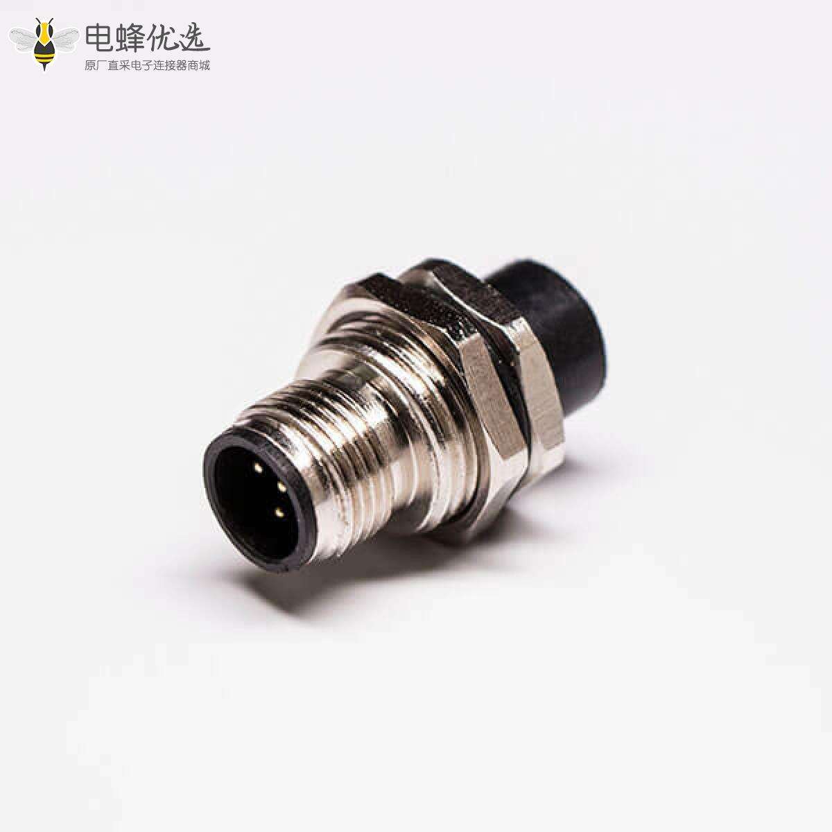 M12,板端插座,B Code,5芯,直式,公头,接PCB板,前锁板;