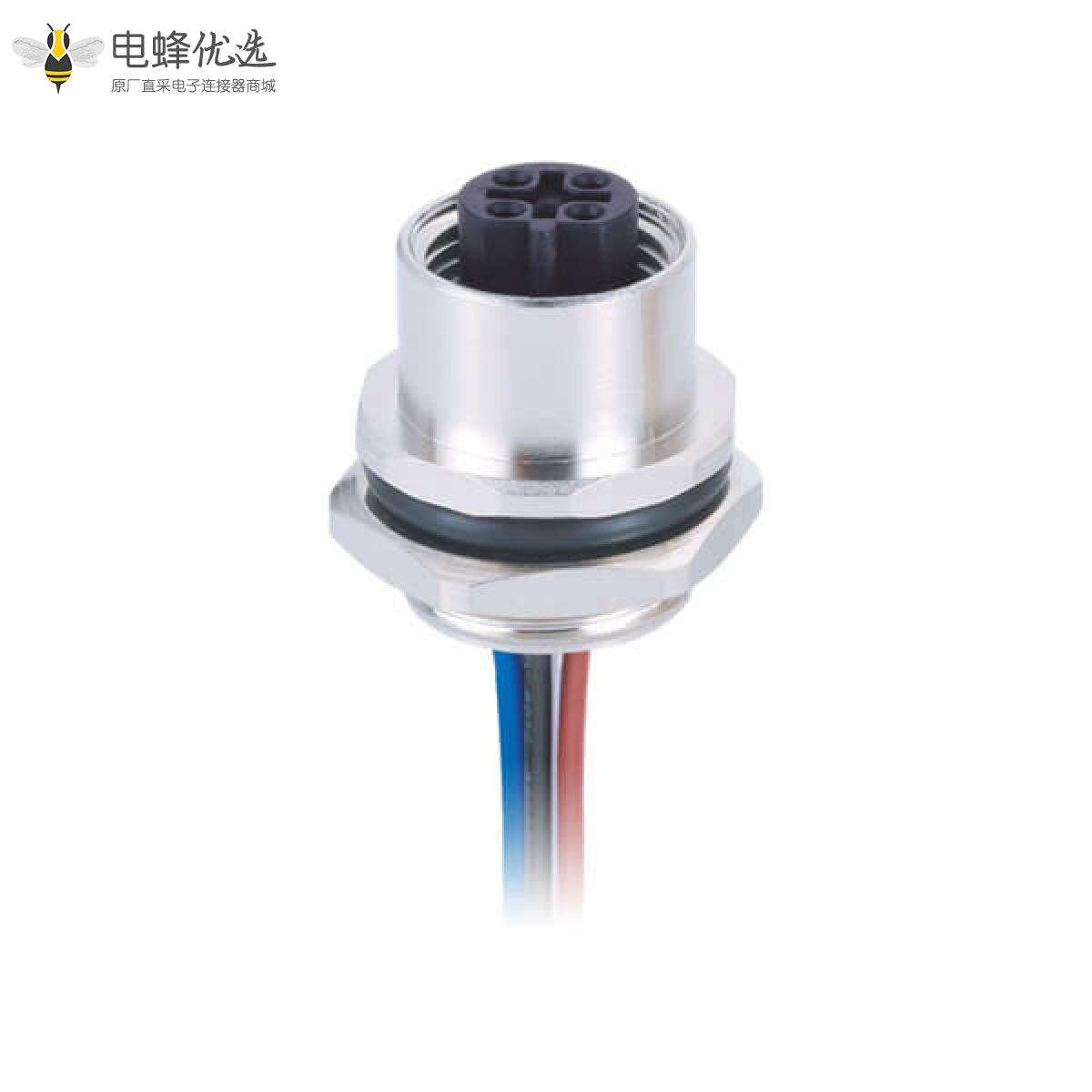 M12,板端插座,B Code,5芯,直式,母头板端,焊线,后锁板;