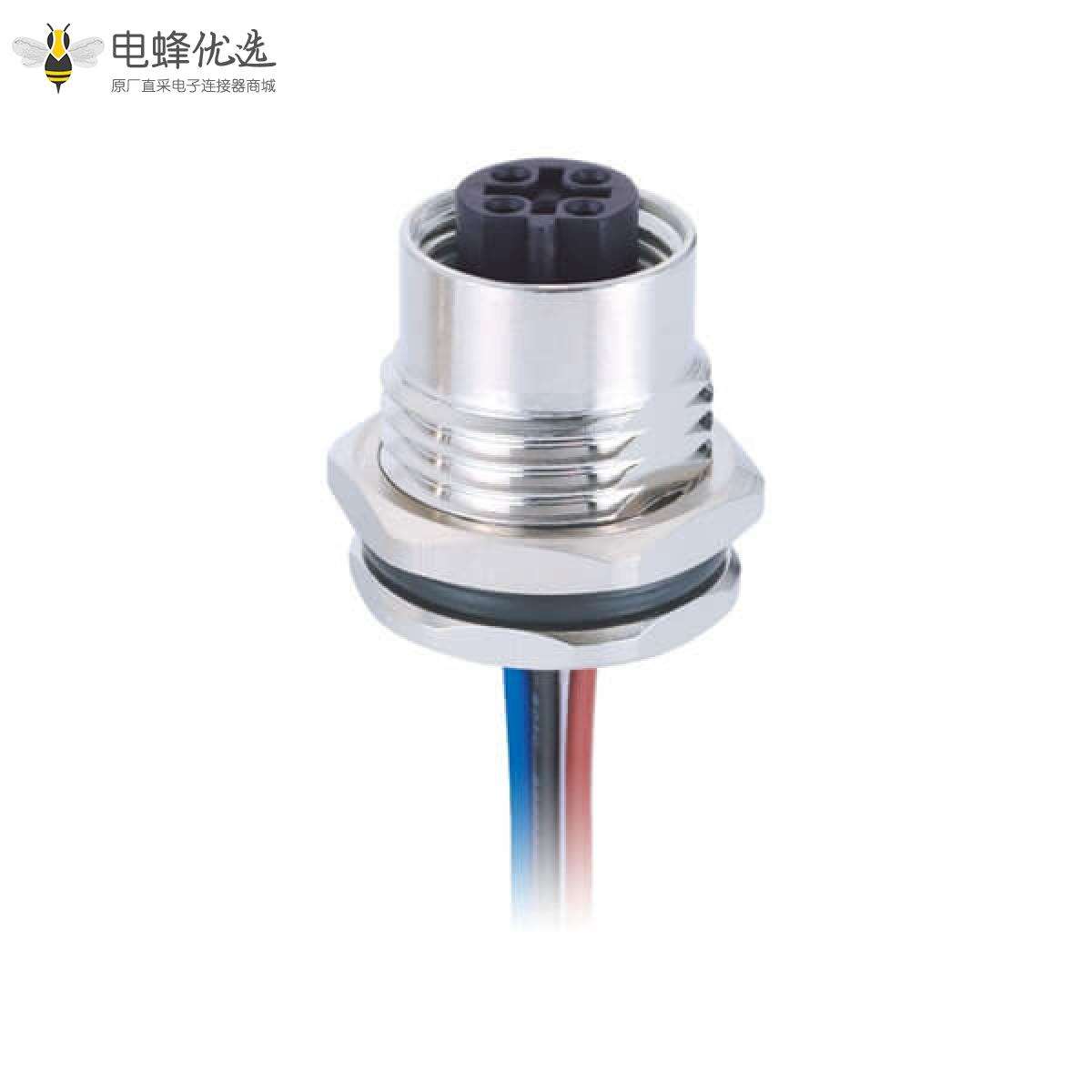 M12,板端插座,B Code,5芯,直式,母头板端,焊线,前锁板;