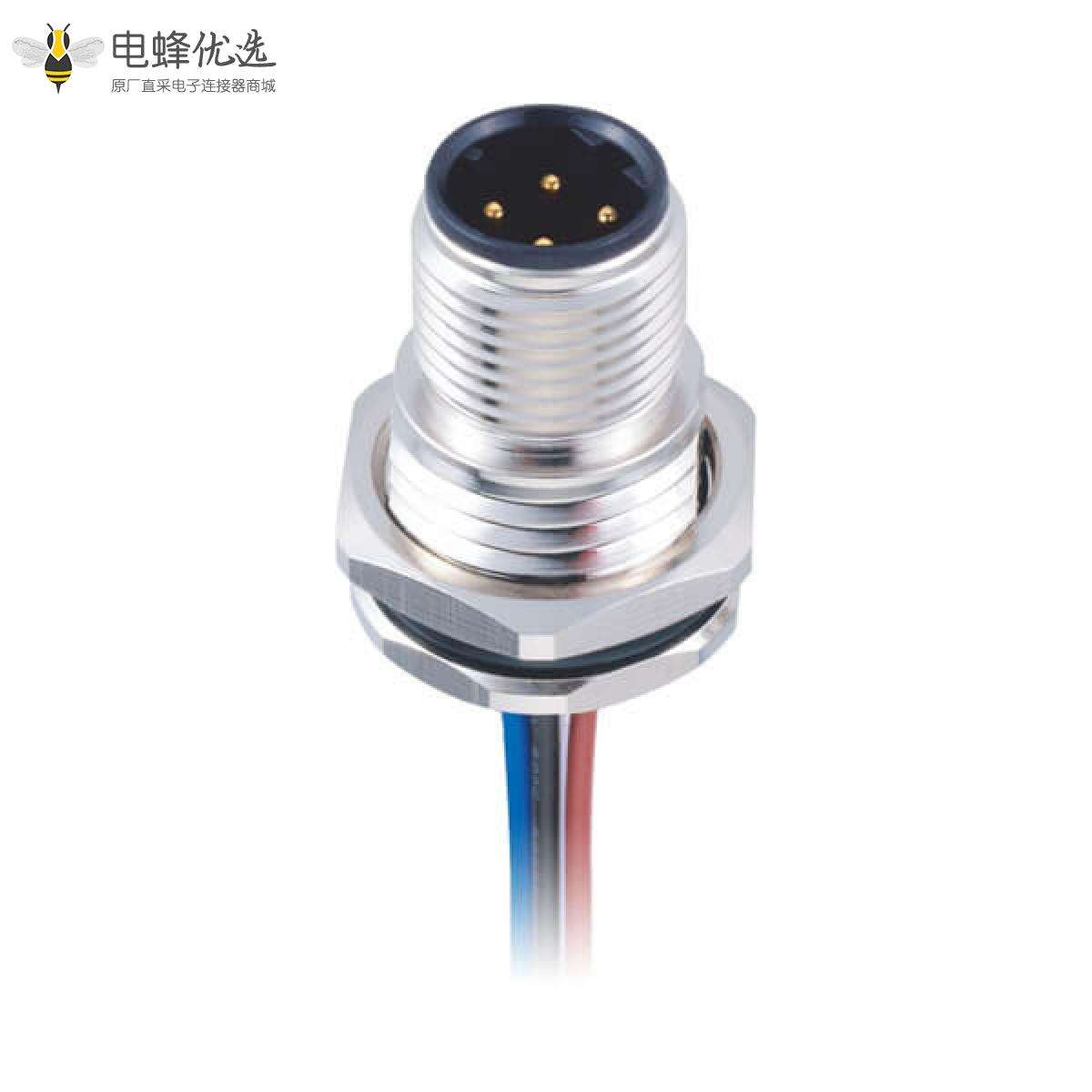 M12,板端插座,D Code,4芯,直式,公头板端,焊线,前锁板;