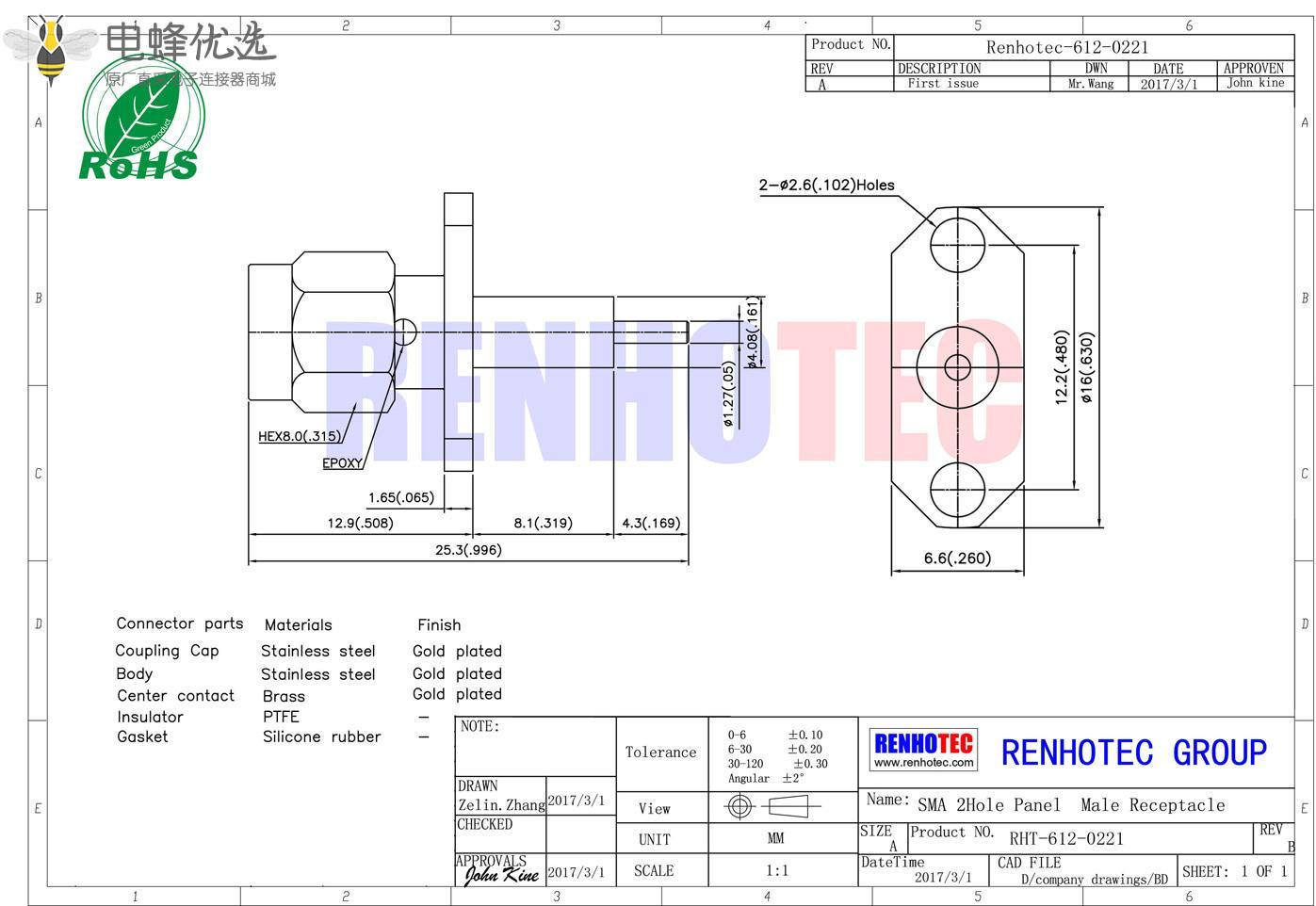 - sma连接器,直式,公头,2孔法兰,面板安装,延伸式;