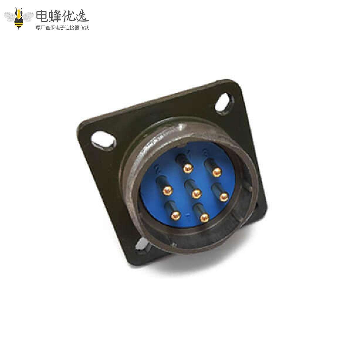Y28M连接器,4孔法兰插座,卡口连接,7芯,公针,面板式插座;