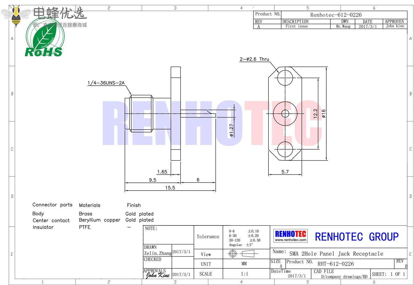 - sma连接器,直式,母头,2孔法兰,面板安装;