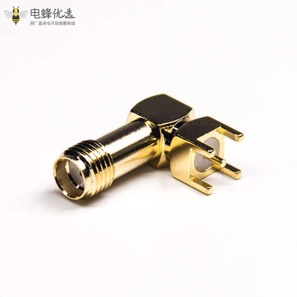 SMA连接器,弯式,母头,穿孔式,PCB板,50欧姆,镀金;